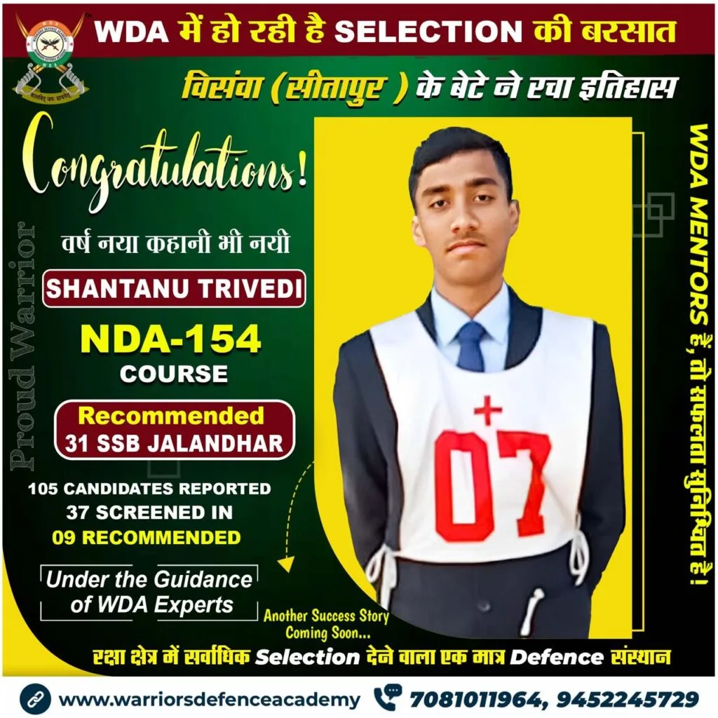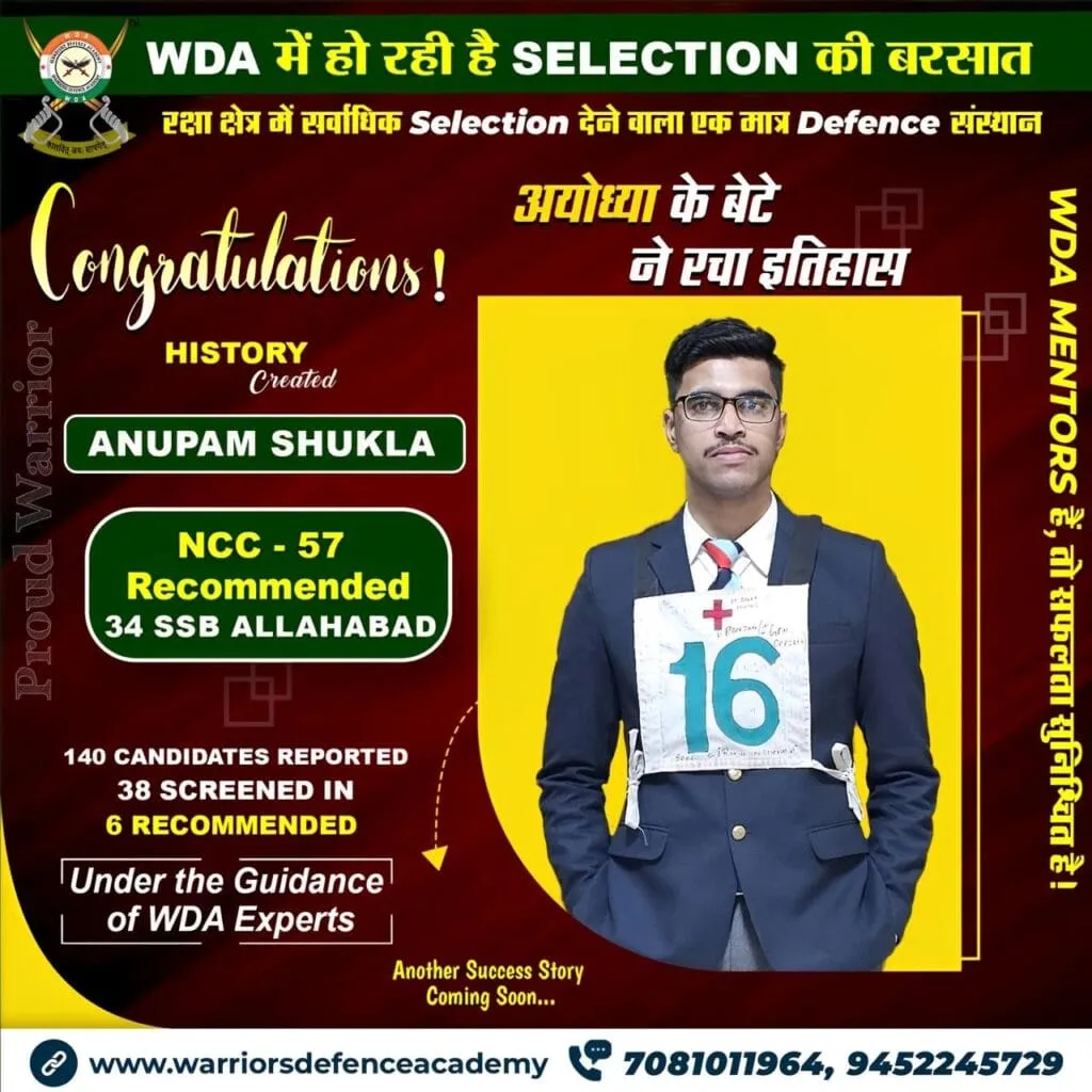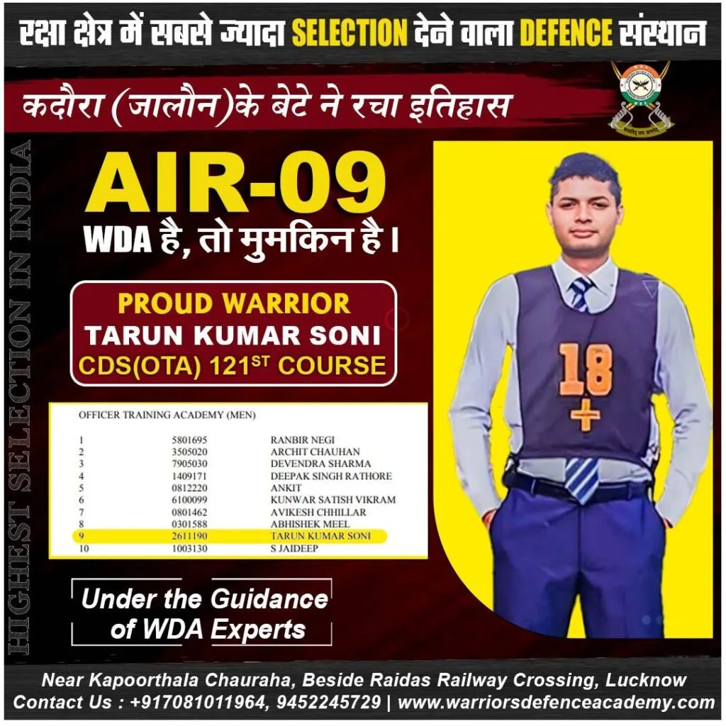 Explore our success stories at Warriors Defence Academy, where we boast the highest selection rate in India. Experience the pinnacle of excellence in defence coaching right here in Lucknow, offering the best-in-class training to aspiring officers nationwide.
