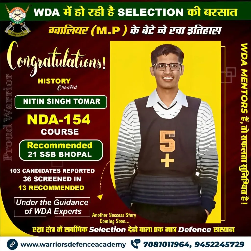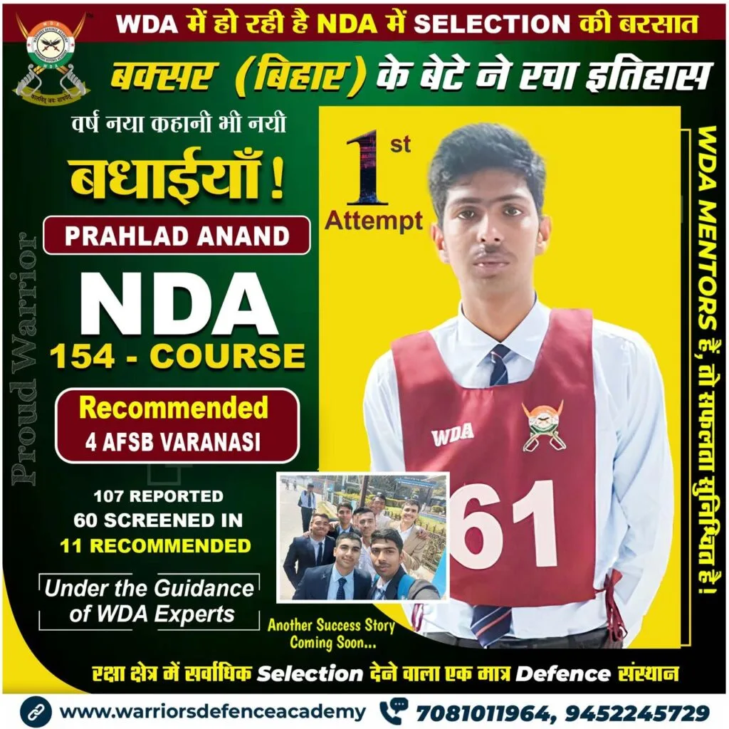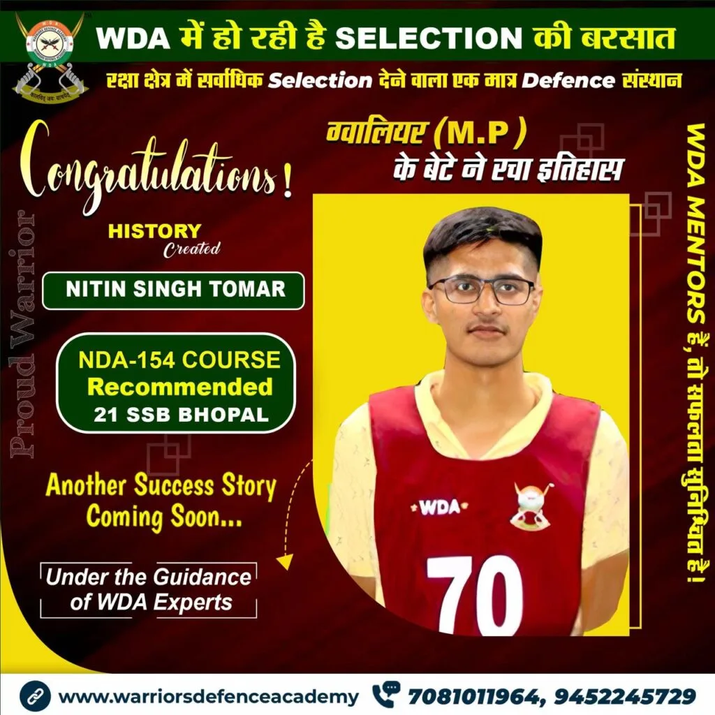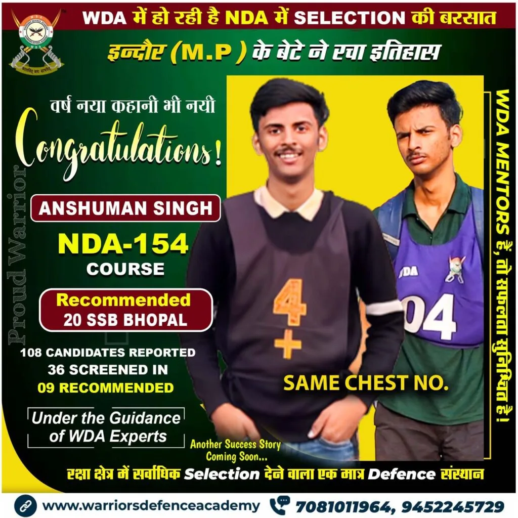 Explore our success stories at Warriors Defence Academy, where we boast the highest selection rate in India. Experience the pinnacle of excellence in defence coaching right here in Lucknow, offering the best-in-class training to aspiring officers nationwide.